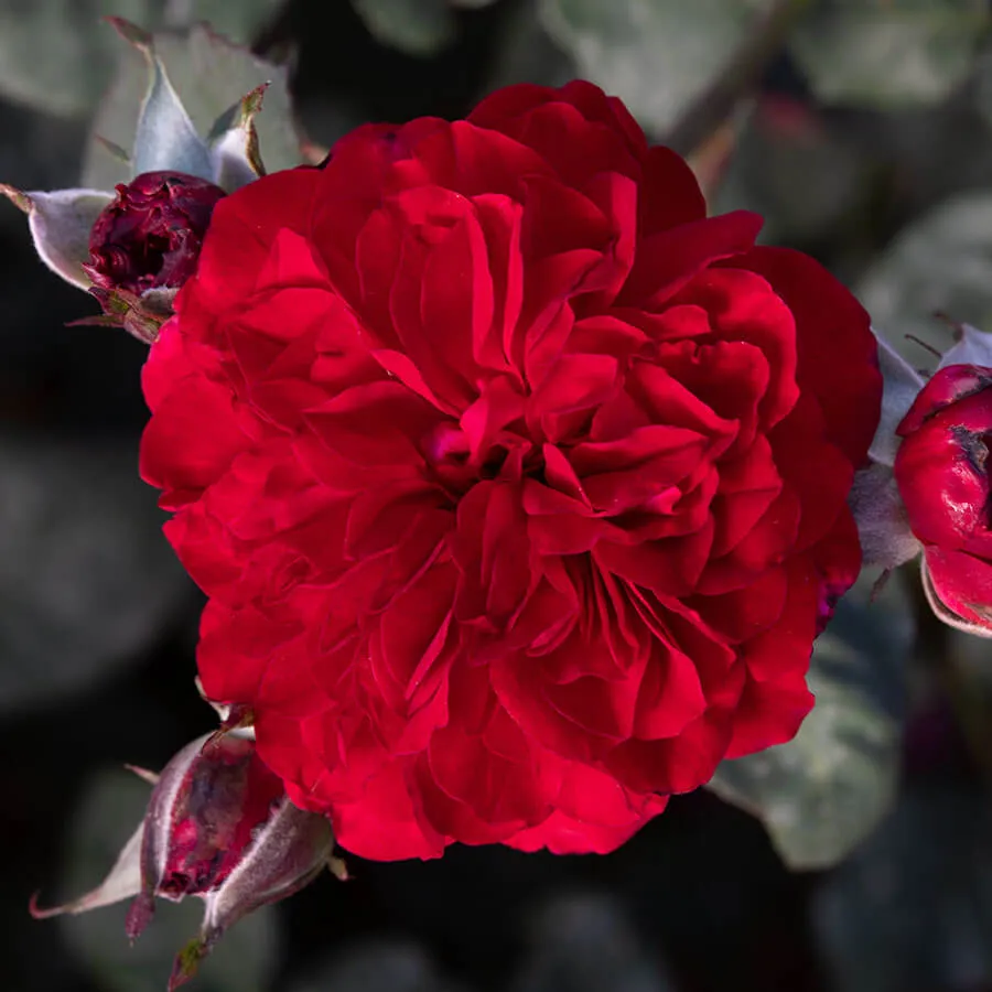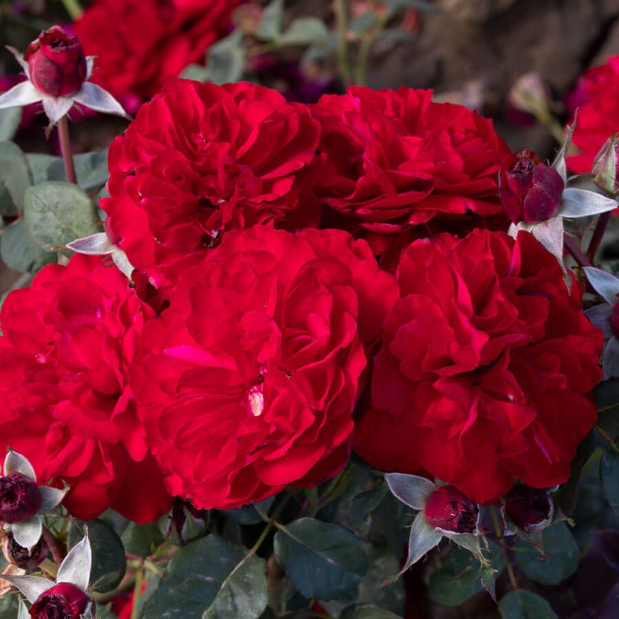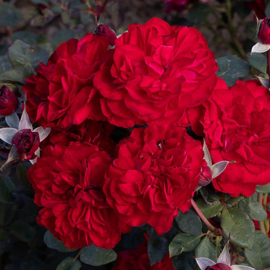 From late spring through the first hard frost, Never Been Redder produces generous clusters of 6 to 8 flowers per stem, each opening from nearly black buds into old-fashioned double blooms. The vivid clear-red petals maintain their intensity as they unfurl in elegant spirals, creating a dramatic, continuous ribbon of color both up close and from across the garden. Lightly fragrant and long-lasting when cut, these blooms are excellent in arrangementsjust one snip provides an eye-catching, richly colored bouquet.