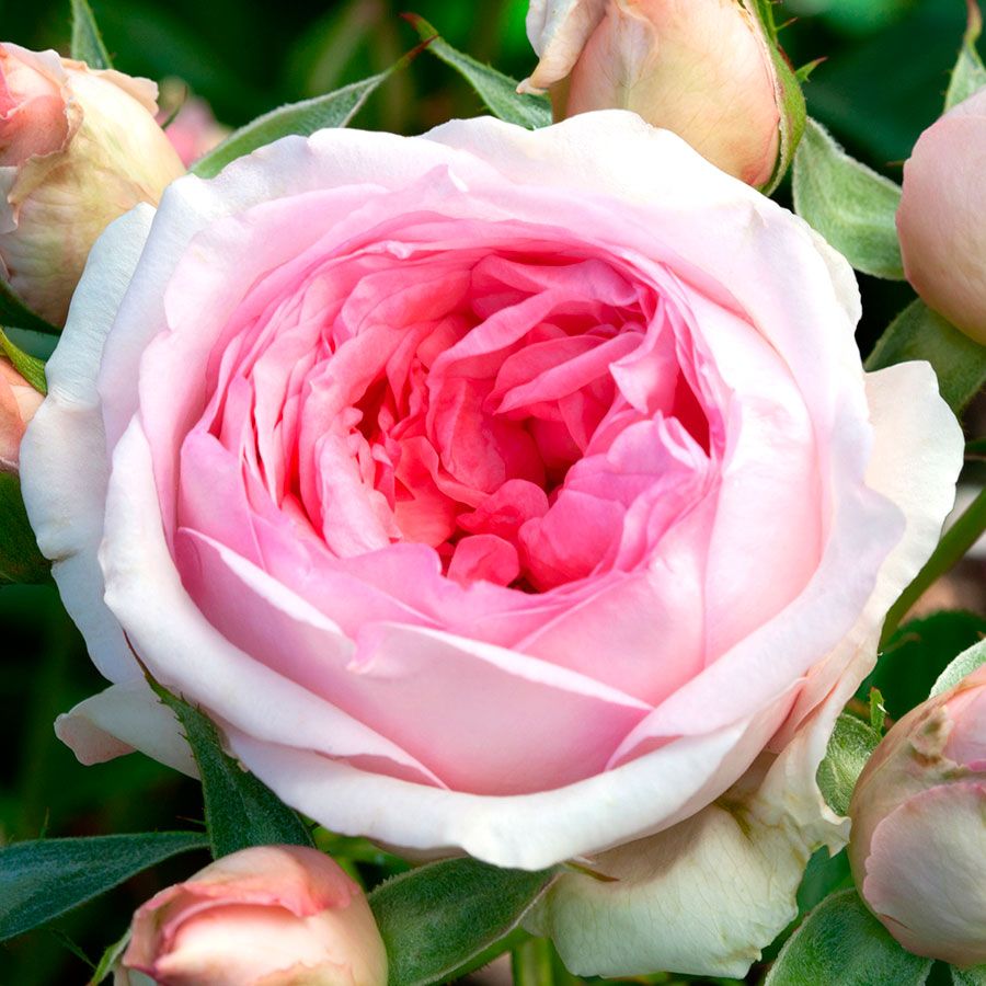 An exclusive 2021 Jackson & Perkins introduction, Sweet Rose Of Mine stands out for its uniquely charming bloom coloration and reliable performance in small spaces. Light pink buds open into cuppy, old-fashioned double flowers with soft pink centers and clean white outer petalsa novelty color pattern that remains stable and holds beautifully through each bloom's life. Generous clusters of 5 to 8 pointed, ovoid buds cover this floribunda rose repeatedly from late spring to mid fall, ensuring a steady show of blossoms. Moderately fragrant with a fruity scent, these blooms are as delightful indoors as they are in the garden, making lovely additions to fresh arrangements.